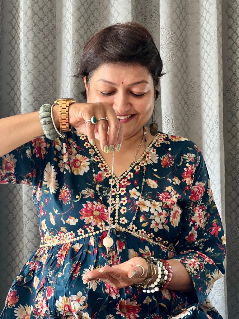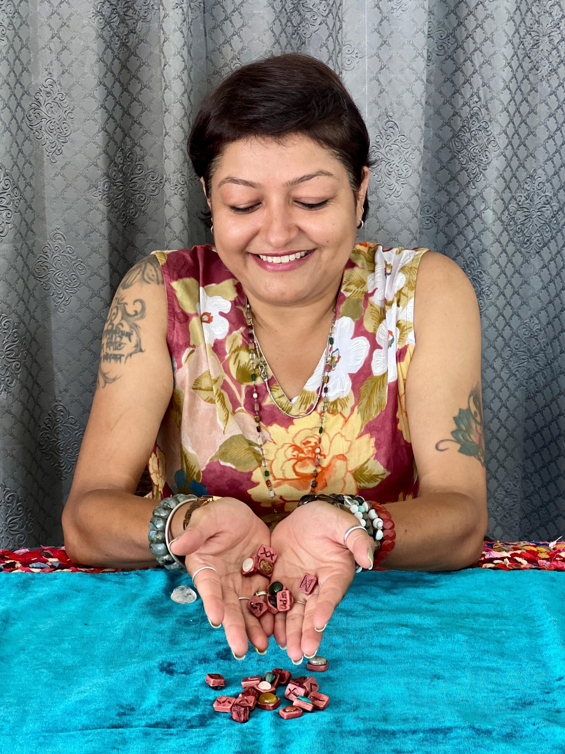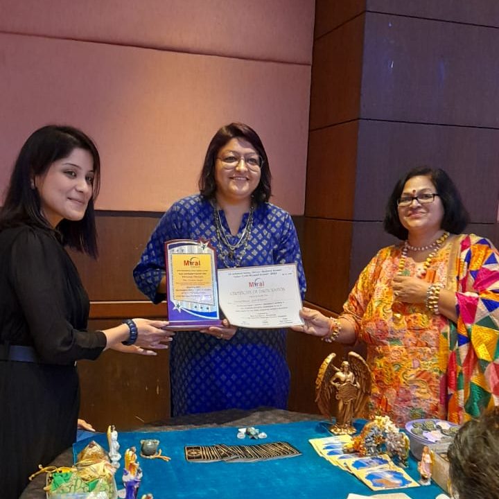 Ms. Devangi Bhojani has an academic background in Bachelors in Commerce (B. Com) & is a Certified Tarot Card expert since 2008, Runes Reader, Numerologist, Crystal Therapist, Reiki Grand Master, Lama Fera Teacher, Money Reiki teacher, Access Bars Practitioner, Vastu consultant, Pendulum Dowser, Jars/Herbs & Oils based in Ahmedabad, Gujarat.